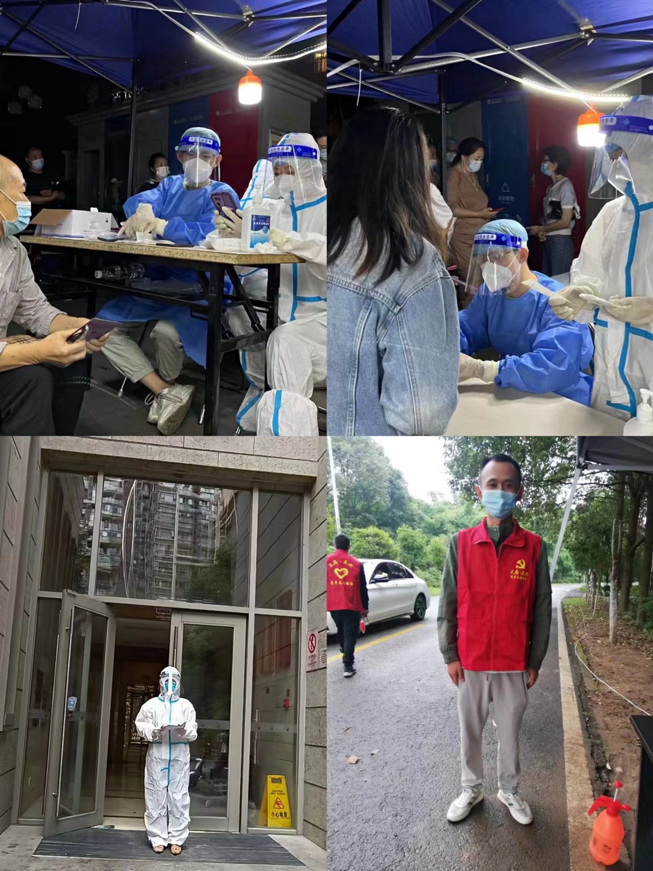 本次疫情我司参与抗疫志愿者的有党员蒋李陵、缑婵婵、杜作平和积极分子廖泽、刘宏。他们分别在居住的社区和村口进行志愿服务,无论是信息采集、维护秩序、分发抗原试纸,还是在社区为独居老人送生活物资,志愿者们有一分热就发一份光,一点一滴地付出,发挥着党员先锋模范作用。