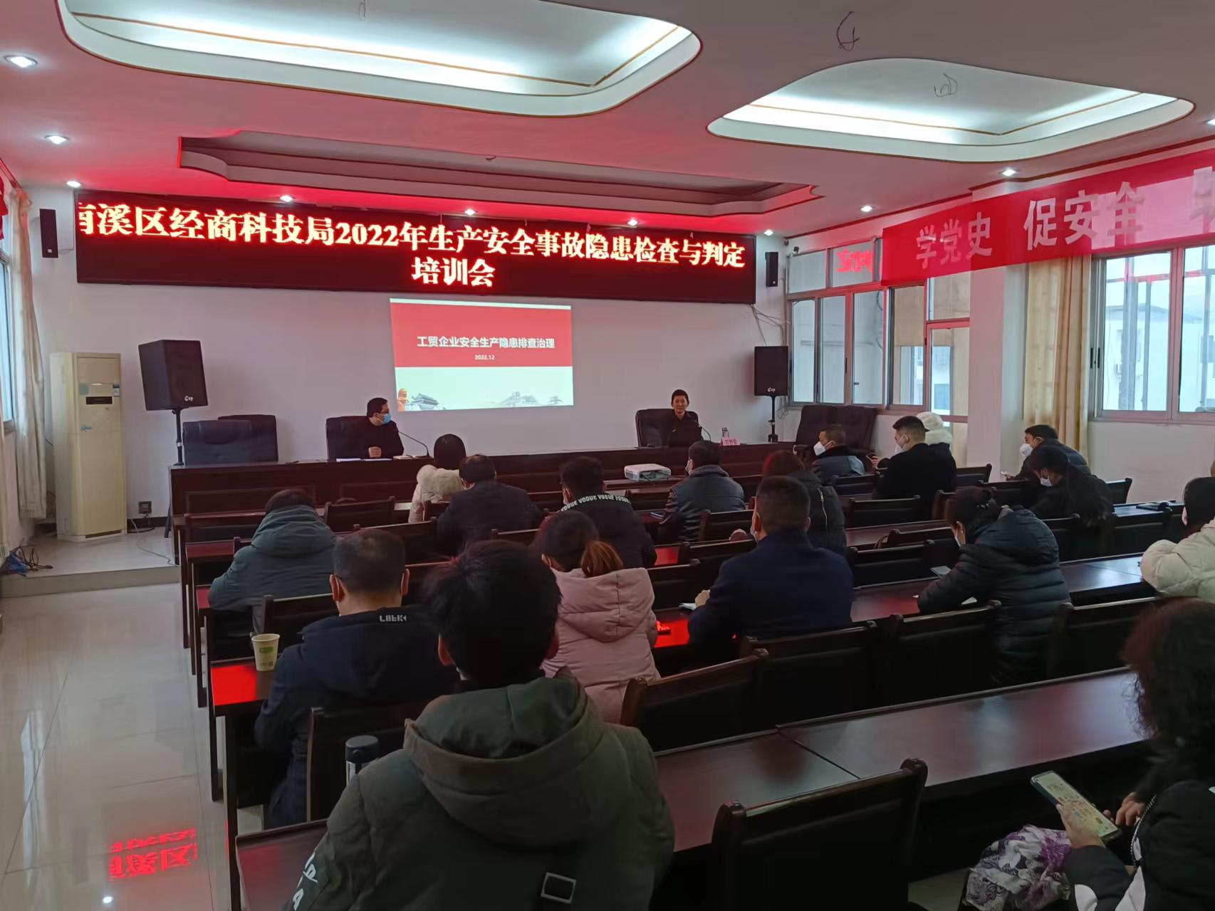 2022年12月15日,我司专家受宜宾市南溪区经济商务信息化和科学技术局邀请对工贸企业进行关于安全生产隐患与判定的培训,通过此次安全培训增强了工贸企业的安全意识,得到了参会领导的高度认可。